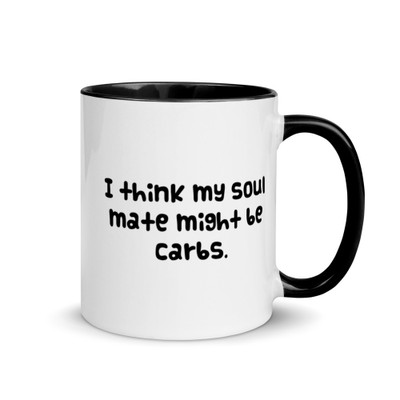 I think my soul mate might be carbs. - Ceramic Mug with Color Inside