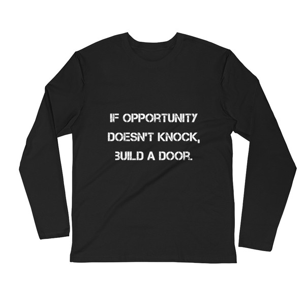 If opportunity doesn't knock, build a door. - Next Level - Premium Fitted Long Sleeve Crew