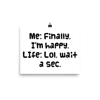 Me: Finally, I'm happy. LIfe: Lol, wait a sec. - Enhanced Matte Paper Poster PRINT-36817