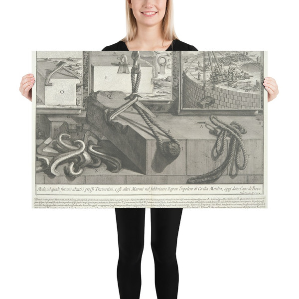 Means by which the large blocks of travertine and marble were lifted during the construction of the large Tomb of Caecilia Metella, from Le Antichità Romane (Roman Antiquities), tome 3, tavola 53 - Gi