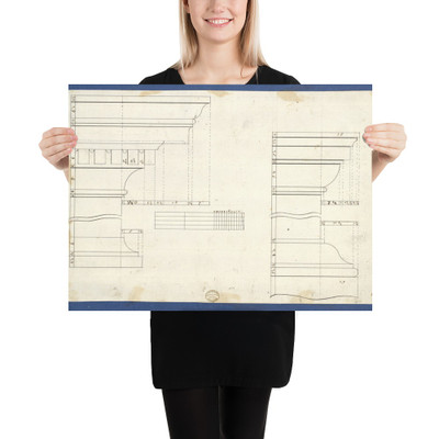 Moldings and Plan for Column on Door of Library Bookcase, from Chippendale Drawings, Vol. II - Thomas Chippendale - 1753 - Premium Luster Photo Paper Poster