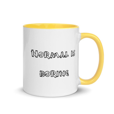 quick view Normal is boring - Ceramic Mug with Color Funny quotes 7848006 MSRP: $21.59 Ceramic Mug with Color InsideAdd a splash of color to your morning coffee or tea ritual! These ceramic mugs not only have a beautiful design on them, but also a colorful rim, handle, and inside, so the mug is bound to spice up your mug rack. •... Add to Wish List Add to My Wish List Create New Wish List Compare