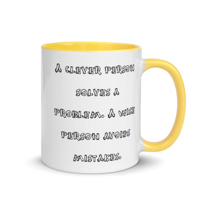 quick view A clever person solves a problem. A wise person avoids mistakes. - Ceramic Mug with Color Funny quotes 7847837 MSRP: $21.59 Ceramic Mug with Color InsideAdd a splash of color to your morning coffee or tea ritual! These ceramic mugs not only have a beautiful design on them, but also a colorful rim, handle, and inside, so the mug is bound to spice up your mug rack. •... Add to Wish List Add to My Wish List Create New Wish List Compare
