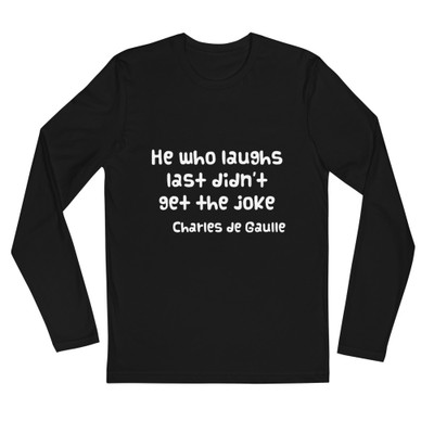 quick view Next Level He who laughs last didn't get the joke - Charles de Gaulle - Next Level - Fitted Long Sleeve Crew PRINT-51200 MSRP: $28.44 b3601 Premium Fitted Long Sleeve Crew/bbr/This supersoft crew shirt is a good choice if youre looking for a classic long sleeve tshirt br/ 100 combed ringspun cotton br/ 32 singles br/ Fabric... Add to Wish List Add to My Wish List Create New Wish List