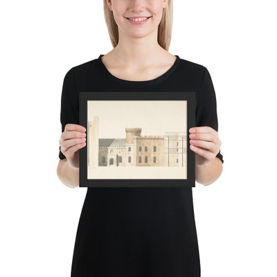 North Aspects of Lea Castle and West Aspect of Wolverly, Cookly, Worcestershire - John Carter - ca. 1816 - Enhanced Matte Paper Framed Poster