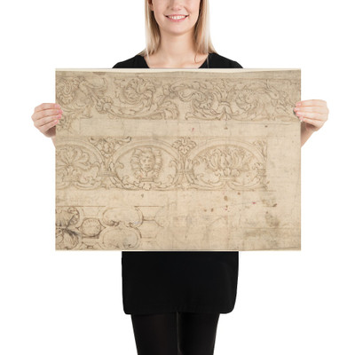 Ornamental Design after the Antique; Bands of Acanthus Rinceaux, Figurated Palmettes, and Shell Cartouches - Anonymous, Italian, 15th to 16th century - 15th–16th century - Canvas Museum quality 7746792