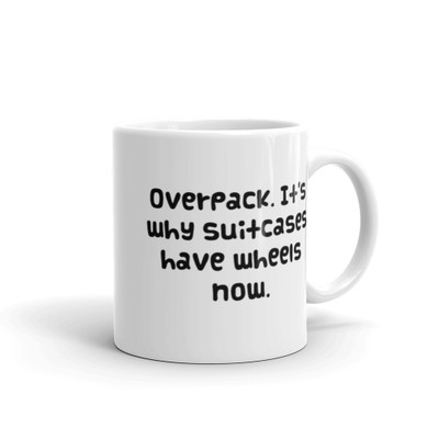 Overpack. It's why suitcases have wheels now. - Matte Black Magic Mug Funny quotes 7838359