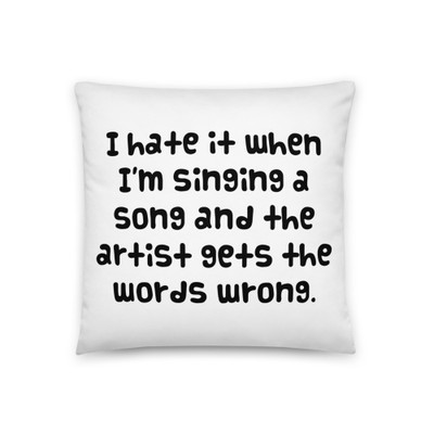 quick view I hate it when I'm singing a song and the artist gets the words wrong. - Pillow Funny quotes 7821632 MSRP: $35.80 All-Over Print Basic PillowA strategically placed accent can bring the whole room to life, and this pillow is just what you need to do that. What"s more, the soft, machine-washable case with the shape-retaining insert is a joy to have long afternoon naps... Add to Wish List Add to My Wish List Create New Wish List Compare