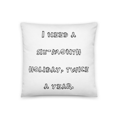 quick view I need a six-month holiday, twice a year. - Pillow Funny quotes 7821126 MSRP: $35.80 All-Over Print Basic PillowA strategically placed accent can bring the whole room to life, and this pillow is just what you need to do that. What"s more, the soft, machine-washable case with the shape-retaining insert is a joy to have long afternoon naps... Add to Wish List Add to My Wish List Create New Wish List Compare