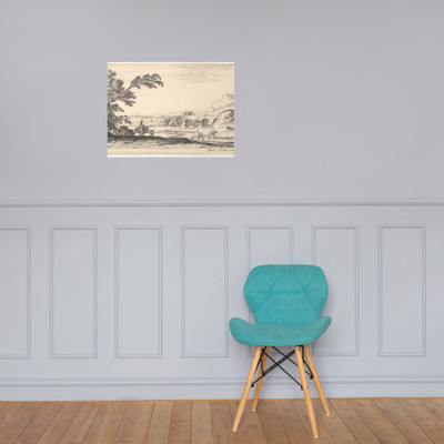 quick view Plate 3: two horsemen crossing a river to right, a woman with two baskets atop a donkey to left, trees to the left and right, a bridge in the background, from 'Various landscapes' (Divers paysages) - MSRP: $34.63 Premium Luster Photo Paper PosterThis poster has a partly glossy, partly matte finish and it"ll add a touch of sophistication to any room. • 10 mil (0.25 mm) thick • Slightly glossy • Fingerprint resistant Add to Wish List Add to My Wish List Create New Wish List Compare