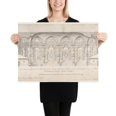 quick view Longitudinal Section of a Ballroom Decorated for the Marriage of the King of Naples to the Archduchess of Austria - Luigi Vanvitelli - 1700–1773 - Premium Luster Photo Paper Poster MSRP: $34.63 Premium Luster Photo Paper PosterThis poster has a partly glossy, partly matte finish and it"ll add a touch of sophistication to any room. • 10 mil (0.25 mm) thick • Slightly glossy • Fingerprint resistant Add to Wish List Add to My Wish List Create New Wish List Compare