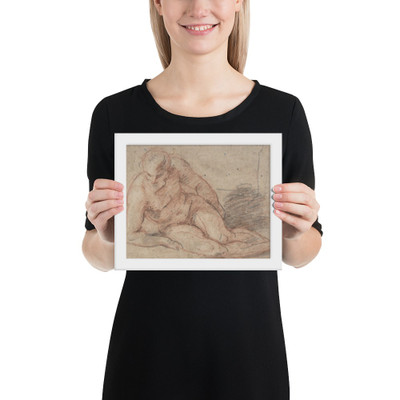 Satyr Reclining on a Ledge, Facing Right (recto); Satyr Reclining on a Ledge, Facing Left (verso) - Jacopo Guarana - 1720–1808 - Enhanced Matte Paper Framed Poster