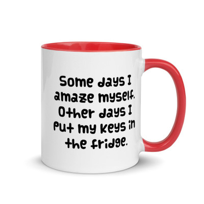 Some days I amaze myself. Other days I put my keys in the fridge. - White Glossy Mug Funny quotes 7821670