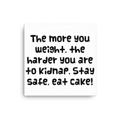 The more you weight, the harder you are to kidnap. Stay safe, eat cake! - Canvas Funny quotes 7817580
