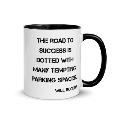 The road to success is dotted with many tempting parking spaces. - Will Rogers - Glossy Black Magic Mug Motivational quotes 7848694