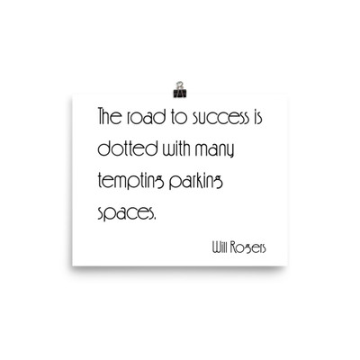 The road to success is dotted with many tempting parking spaces. - Will Rogers - Paper Poster Motivational quotes 7851350