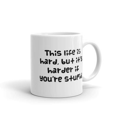 This life is hard, but it's harder if you're stupid. - Glossy Black Magic Mug Funny quotes 7848514