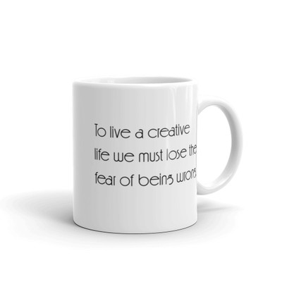 To live a creative life we must lose the fear of being wrong. - Glossy Black Magic Mug Motivational quotes 7848799