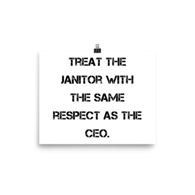 Treat the janitor with the same respect as the CEO. - Enhanced Matte Paper Framed Poster