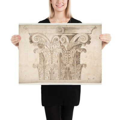Unknown, Corinthian capital, elevation (recto) Unknown, Corinthian capital, plan diagram and detail (verso) - Anonymous, French, 16th century - ca. 1540–60 - Enhanced Matte Paper Poster