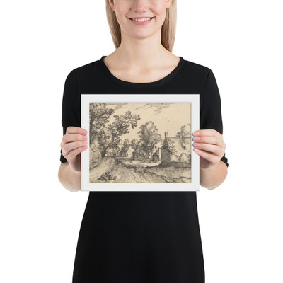Village Road, plate 12 from Regiunculae et Villae Aliquot Ducatus Brabantiae - Claes Jansz. Visscher - ca. 1610 - Enhanced Matte Paper Framed Poster