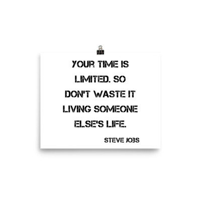 Your time is limited. So don't waste it living someone else's life. - Steve Jobs - Premium Luster Photo Paper Poster